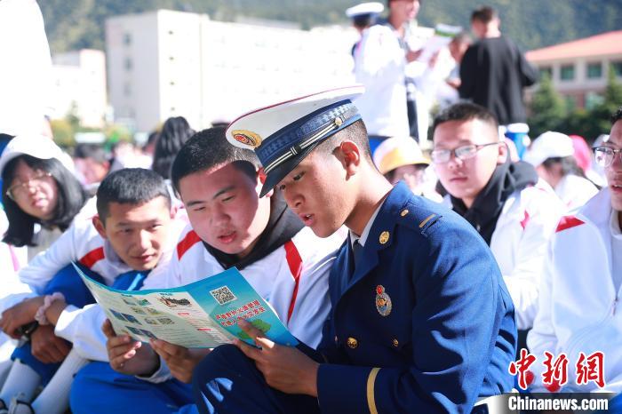 圖為林芝市森林消防支隊走進校園宣傳防火知識?!∥骼@拉翁 攝