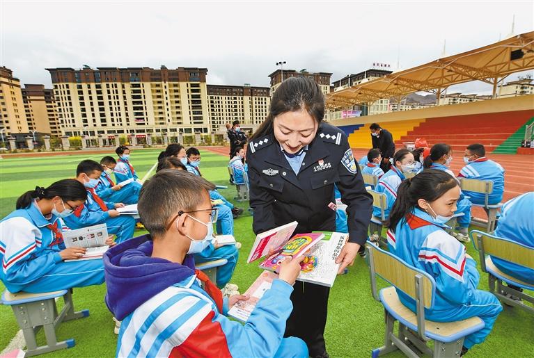 在第27個(gè)世界讀書日來(lái)臨之際,4月22日,拉薩市城關(guān)區(qū)廣場(chǎng)派出所社區(qū)警務(wù)隊(duì)第一黨支部黨員來(lái)到“手拉手共建班”——拉薩市第一小學(xué)五年級(jí)5班,為孩子們贈(zèng)送少兒書籍,鼓勵(lì)孩子們多讀書、讀好書。