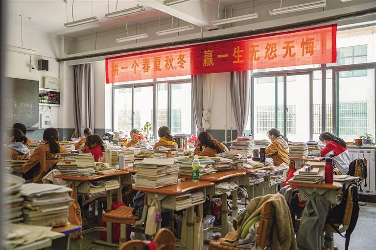 走進(jìn)高三年級(jí)教學(xué)樓,走廊里不時(shí)傳來(lái)朗朗讀書(shū)聲,每一個(gè)角落都充斥著同學(xué)們?yōu)榍啻汉蛪?mèng)想奮力拼搏的氣息。在高三(9)班的教室里,學(xué)生們正在全神貫注地聽(tīng)課,時(shí)而看課本、時(shí)而做筆記,神情認(rèn)真且專注。桌面上堆積的高高的書(shū)籍、練習(xí)冊(cè)和教室墻上掛著的高考倒計(jì)時(shí)牌都在時(shí)刻提醒著同學(xué)們,高考離他們?cè)絹?lái)越近了。“現(xiàn)在是高考復(fù)習(xí)的關(guān)鍵時(shí)期,同學(xué)們學(xué)得很認(rèn)真,班里的學(xué)習(xí)氛圍特別好,大家互相幫助、共同進(jìn)步。希望我們通過(guò)自己的努力,考上理想的大學(xué),實(shí)現(xiàn)自己的夢(mèng)想。”學(xué)生斯朗卓瑪告訴記者。