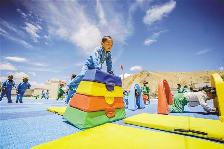 “新操場是我們的游樂場?!绷鶜q的旦增次央第一次見到新操場時(shí)開心極了,“在新操場上可以跑可以跳,還有好多新玩具,太好玩了!”