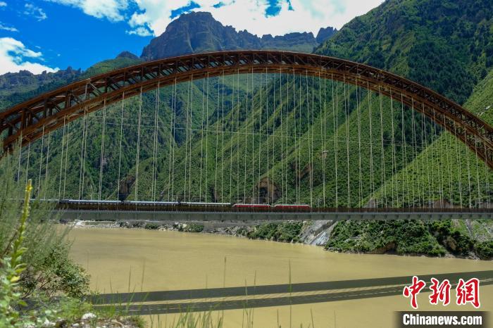 圖為一列火車經(jīng)過(guò)西藏雅魯藏布江藏木大橋?!〗w波 攝