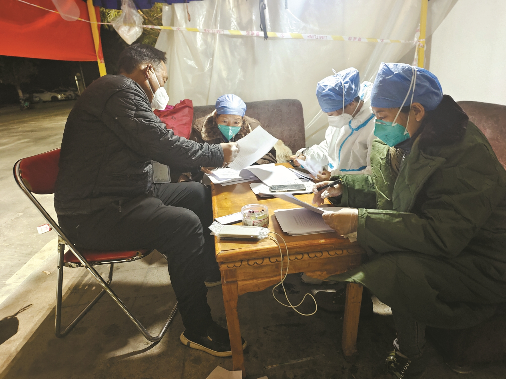 圖為市體育局駐柳梧村察古組工作組深夜統(tǒng)計信息。(由市體育局提供)