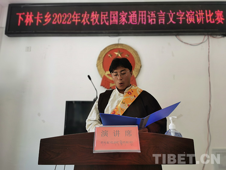 中國(guó)西藏網(wǎng)訊 近日,一場(chǎng)主題“學(xué)習(xí)宣傳貫徹黨的二十大精神、全面振興鄉(xiāng)村文化、促進(jìn)民族團(tuán)結(jié)進(jìn)步”的農(nóng)牧民國(guó)家通用語(yǔ)言文字演講比賽在西藏自治區(qū)昌都市左貢縣下林卡鄉(xiāng)政府舉行。