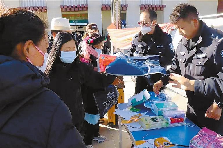 7日,日喀則市禁毒辦組織警力在日喀則火車站開展以“平安春運·禁毒同行·遠(yuǎn)離毒品·健康生活”為主題的禁毒宣傳教育活動。
