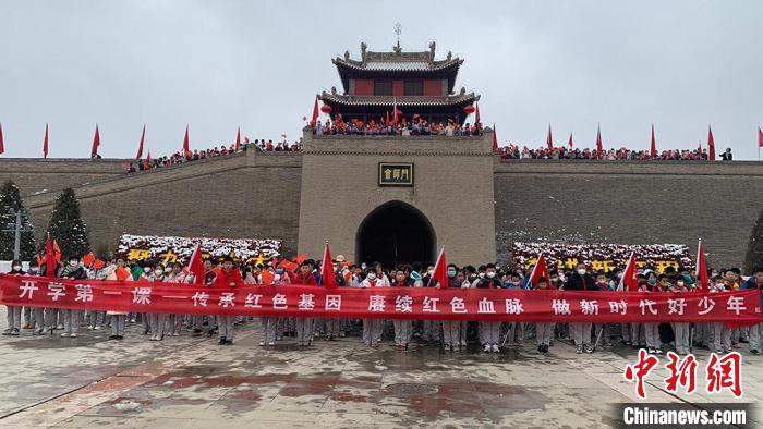 圖為甘肅省白銀市白銀區(qū)第十四小學(xué)“開學(xué)第一課”學(xué)生參觀紅色教育基地?!「拭C省白銀市白銀區(qū)第十四小學(xué)供圖