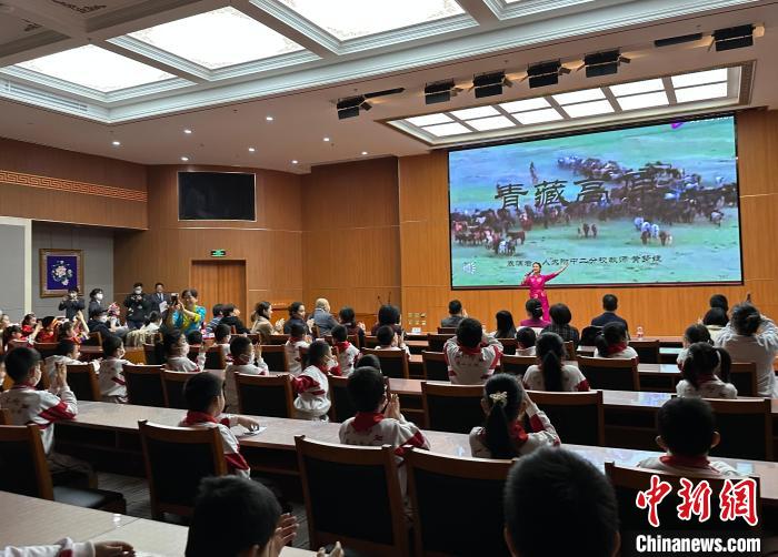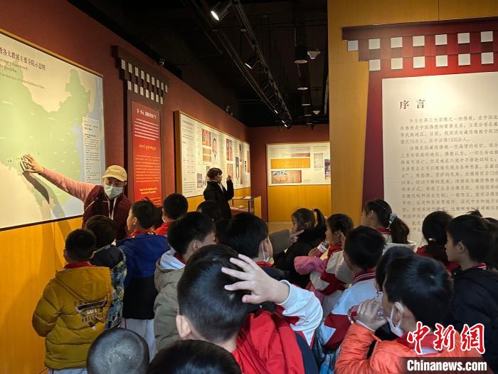 圖為活動(dòng)當(dāng)天西藏文化博物館的志愿者們帶領(lǐng)小朋友參觀館內(nèi)展覽。 李晗雪 攝