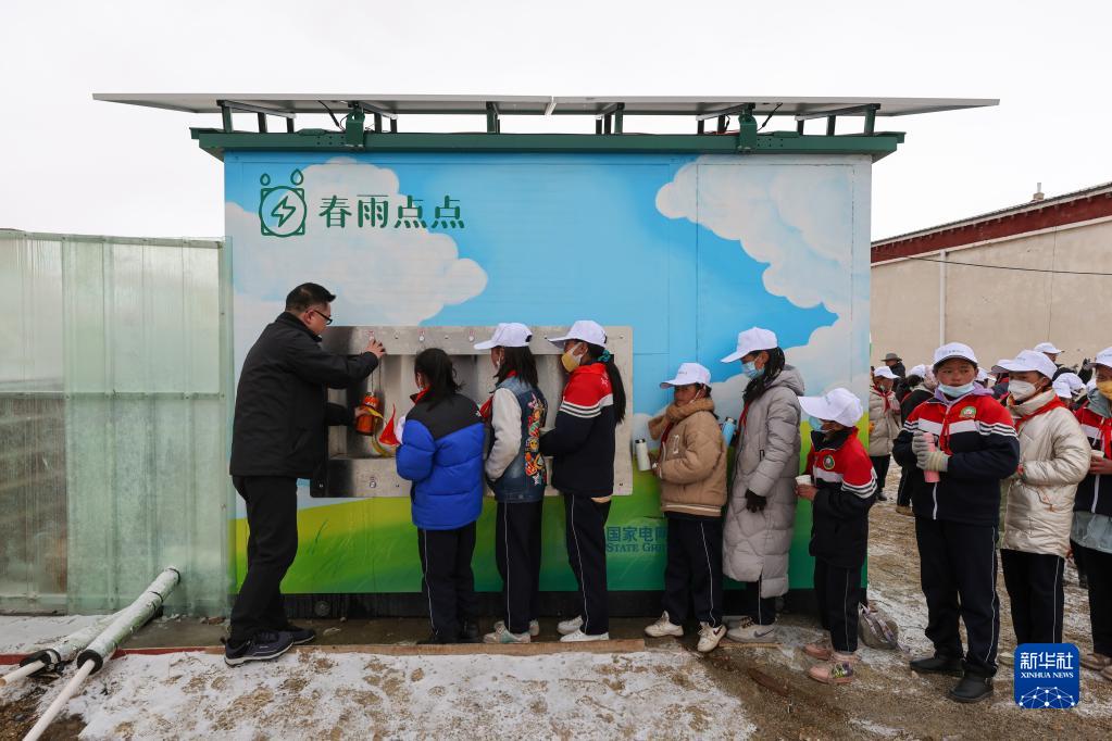 3月21日,那曲市色尼區(qū)香茂鄉(xiāng)小學(xué)的同學(xué)們在新啟用的凈水站打水。新華社記者 姜帆 攝