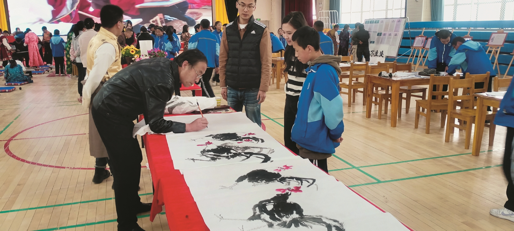 活動為拉薩市柳梧初級中學(xué)愛好書法的師生提供了一個展現(xiàn)自我價值的平臺,為充分展現(xiàn)中國書畫藝術(shù)魅力、繼承和弘揚(yáng)傳統(tǒng)的國粹文化藝術(shù),藝術(shù)家們揮毫潑墨,現(xiàn)場演繹國畫和書法經(jīng)典,以提升廣大師生的藝術(shù)修養(yǎng)和審美情趣,激發(fā)大家研學(xué)書法的興趣和愛好。
