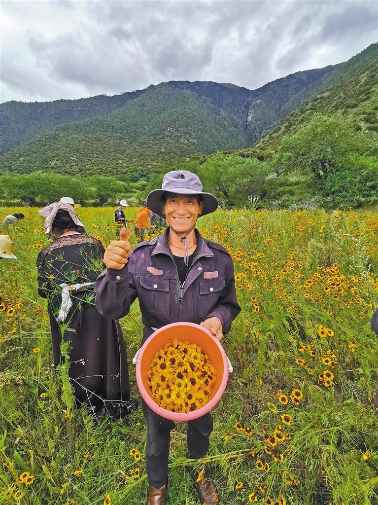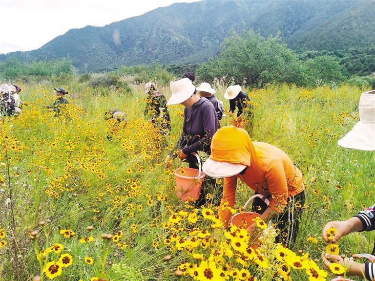 圖為巴宜區(qū)人社局聯(lián)合林芝林卡旅游開(kāi)發(fā)有限公司開(kāi)展“以工代訓(xùn)”,組織農(nóng)牧民群眾在布久鄉(xiāng)工布原鄉(xiāng)景區(qū)采收雪菊。通訊員 楊健 記者 謝筱純 王珊 攝