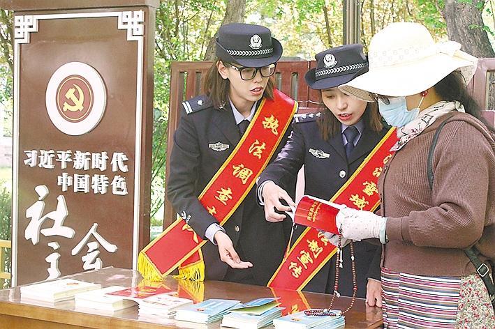 支隊民警在宗角祿康公園設(shè)立宣傳點,通過發(fā)放宣傳資料和現(xiàn)場解答等形式,以通俗易懂的語言向群眾介紹民法典概況、頒布意義,并重點對群眾關(guān)心的物權(quán)、繼承、婚姻家庭等方面內(nèi)容提供法律咨詢,引導(dǎo)群眾加強法律知識學(xué)習(xí),養(yǎng)成學(xué)法、守法、用法、護法的良好習(xí)慣。