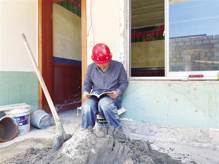 閑暇時,朔風(fēng)在工地上看書。文/圖 記者 趙越