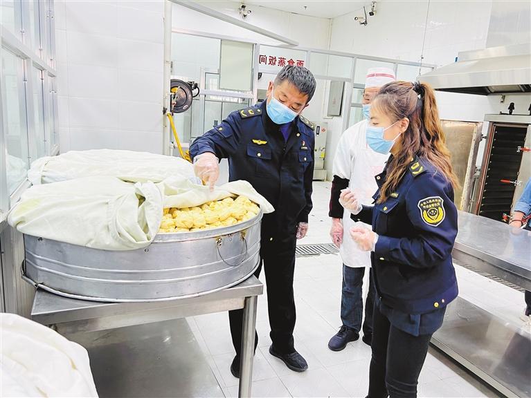拉薩市市場(chǎng)監(jiān)管局執(zhí)法人員對(duì)學(xué)生早餐進(jìn)行檢查。記者 央金 攝