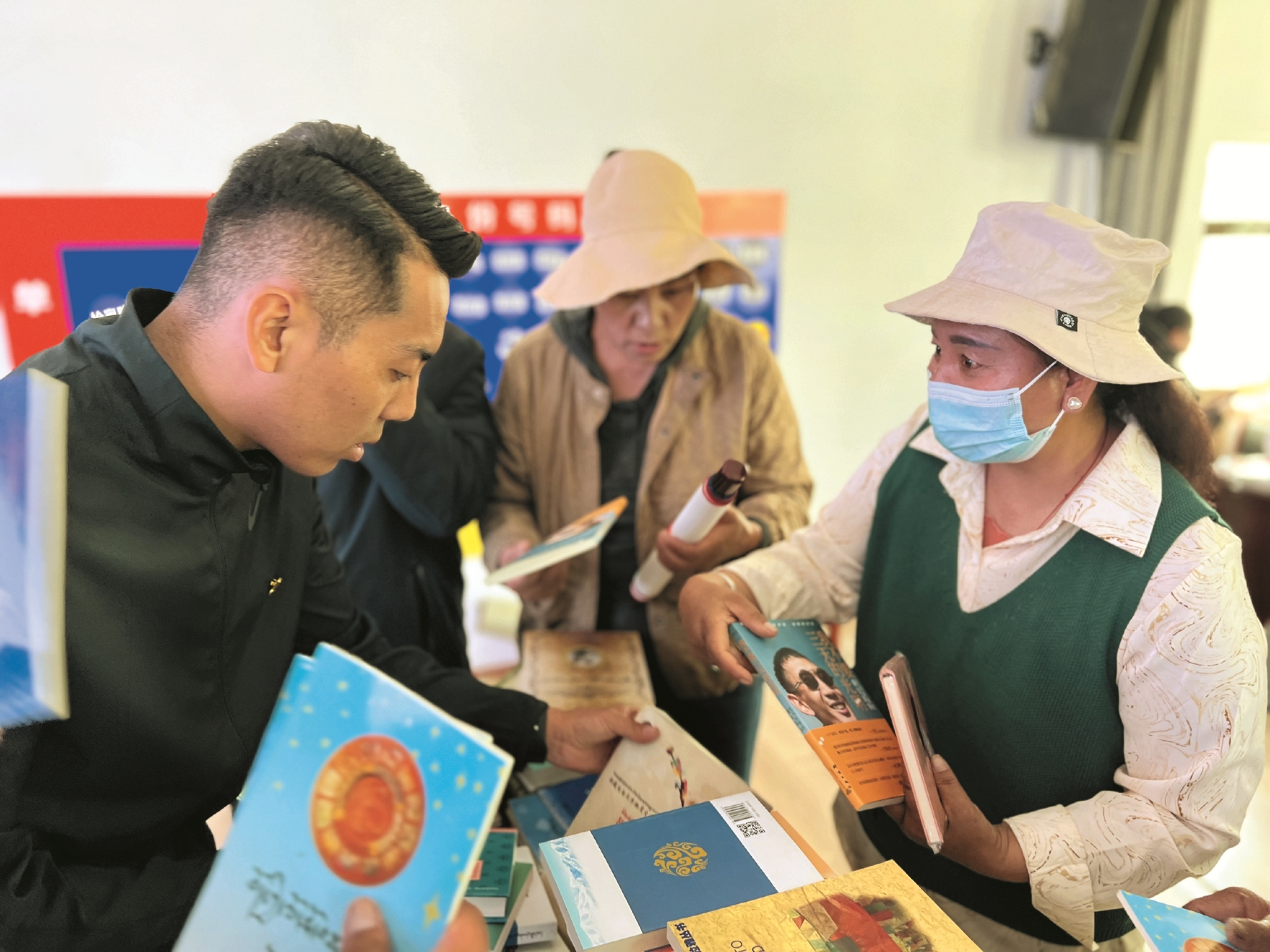 圖為圖書館工作人員在為居民免費發(fā)放書籍。拉薩融媒記者 大索朗曲珍攝