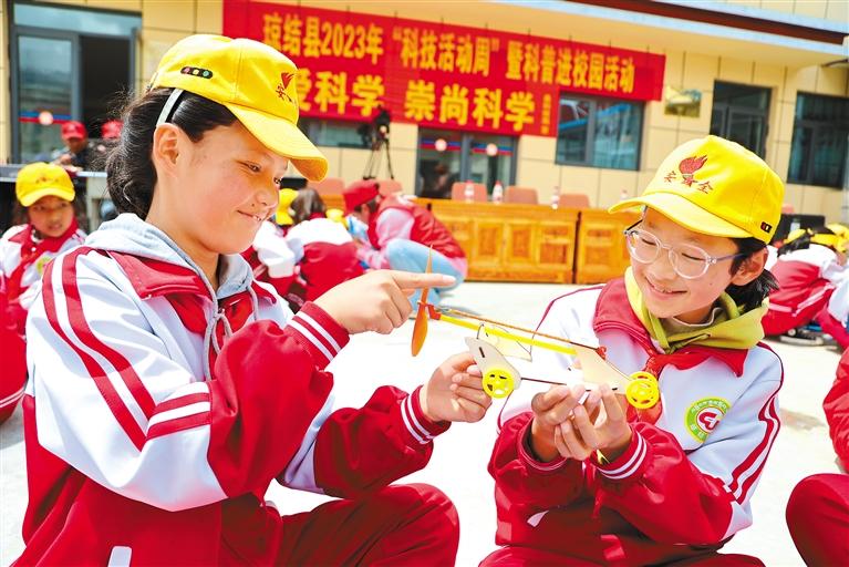 圖為瓊結縣拉玉鄉(xiāng)小學學生在對拼裝完成的橡皮筋動力車進行實驗。(資料圖片)記者 白瑪澤旺 通訊員 倫珠澤仁 攝