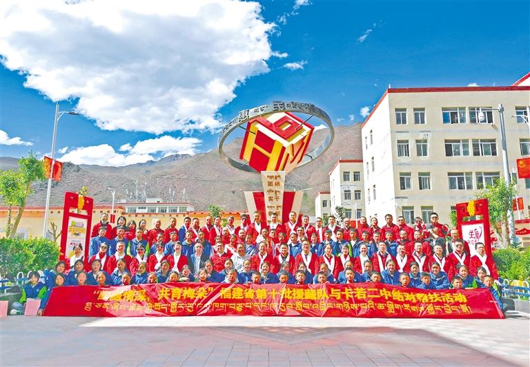 福建省第十批援藏工作隊與昌都市卡若區(qū)第二初級中學(xué)的結(jié)對幫扶學(xué)生合影留念。
