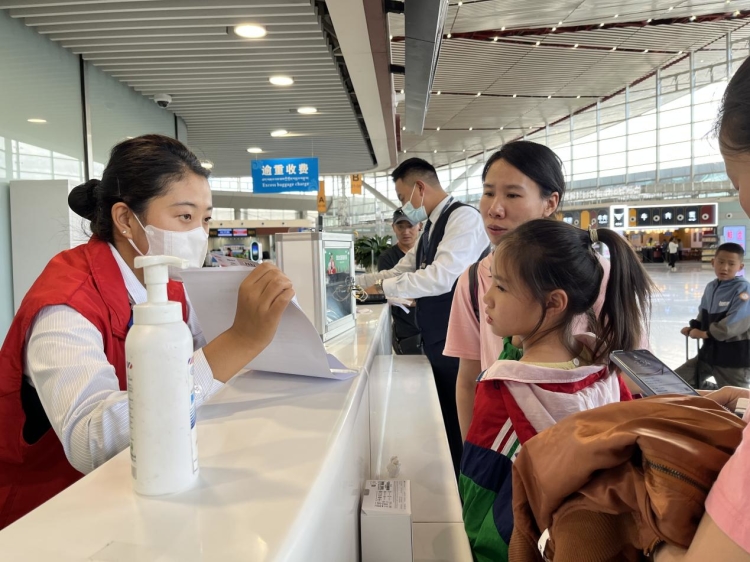 圖為“暑運(yùn)”期間拉薩貢嘎機(jī)場(chǎng)為旅客提供“無(wú)陪兒童”服務(wù)