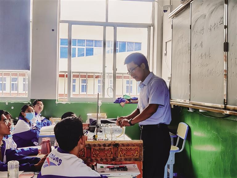 “李老師非常平易近人、和藹可親,他會帶著我們做化學(xué)實驗,在實驗中可以了解到很有趣的知識,讓我們更加快樂地學(xué)習(xí)。”拉薩市第八中學(xué)九年級二班的同學(xué)們表示,李老師關(guān)心每個人的學(xué)習(xí)狀況,如果有人在考試中表現(xiàn)不佳,李老師會親自講解,并在試卷上標(biāo)注出需要改正的錯誤。下課后,李老師也會認(rèn)真傾聽學(xué)生們的想法和感受,與孩子們互動交流。