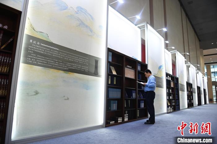 9月12日,長江文明書館在重慶設(shè)展陳,圖為展出的古籍。中新網(wǎng)記者 陳超 攝