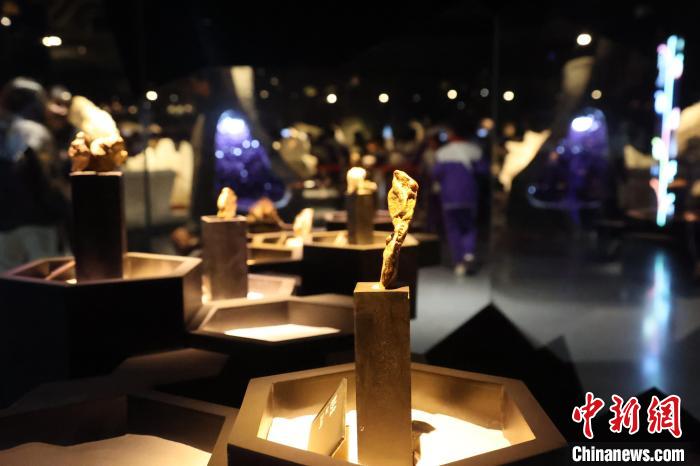 圖為青海省自然資源博物館展出的狗頭金。張?zhí)砀?攝