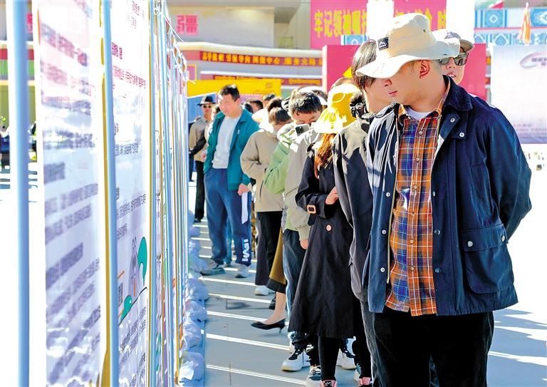 圖為阿里干部群眾在活動(dòng)現(xiàn)場(chǎng)觀看宣傳展板。記者 永青 攝