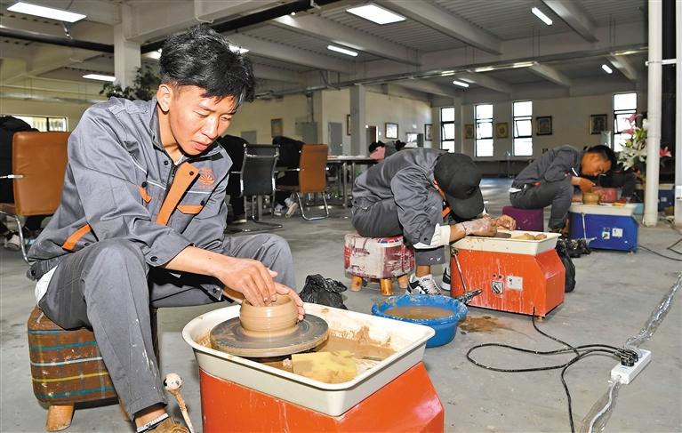 圖為西藏一家企業(yè)工作人員在制作陶瓷。記者 唐斌 攝