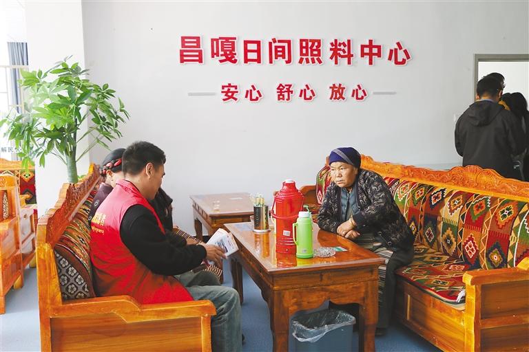圖為昌嘎村新時(shí)代文明實(shí)踐站志愿者向村里老人們宣傳黨的富民政策。記者 武沛濤 攝