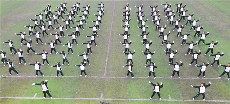 拉薩北京實驗中學的學生不僅能盡情“舞”動,而且還能在體育組老師的指導下“武”動起來。桂小英老師在“武術基礎”校本課程以外還創(chuàng)編了武術操《英雄少年》。這套操是集武術和體操動作于一體的運動,包含太極拳、少年拳、南拳和健身氣功,姿勢舒展大方,動作剛勁有力。通過操練《英雄少年》、參加武術校本課,學生在增強身體素質(zhì)和意志品質(zhì)的同時,還傳承、弘揚了中華文化,且增強了團隊合作意識和自我保護的能力。