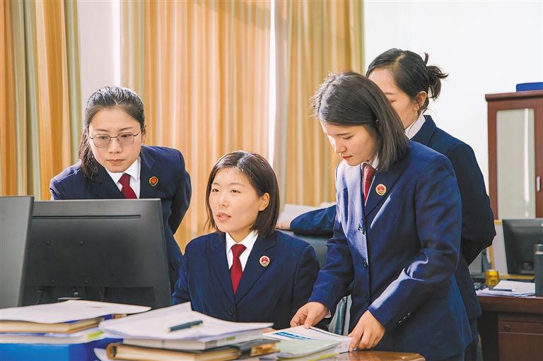 圖為席淑姣(左二)積極發(fā)揮傳幫帶作用,向年輕同事傳授辦案經(jīng)驗。圖/文 記者 王杰學(xué) 通訊員 張超