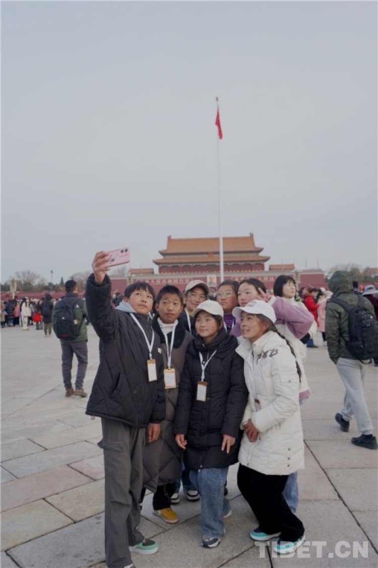 中國西藏網(wǎng)訊 “我們來自西藏,我在天安門廣場看升旗,特別激動,特別開心,特別感動!”來自西藏自治區(qū)日喀則市邊境縣學生赴北京參觀研學的22名學生激動地擠進老師的手機鏡頭高聲喊著。
