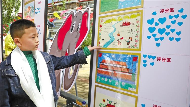 參加活動的小朋友在展示自己的作品。記者 格桑倫珠 攝