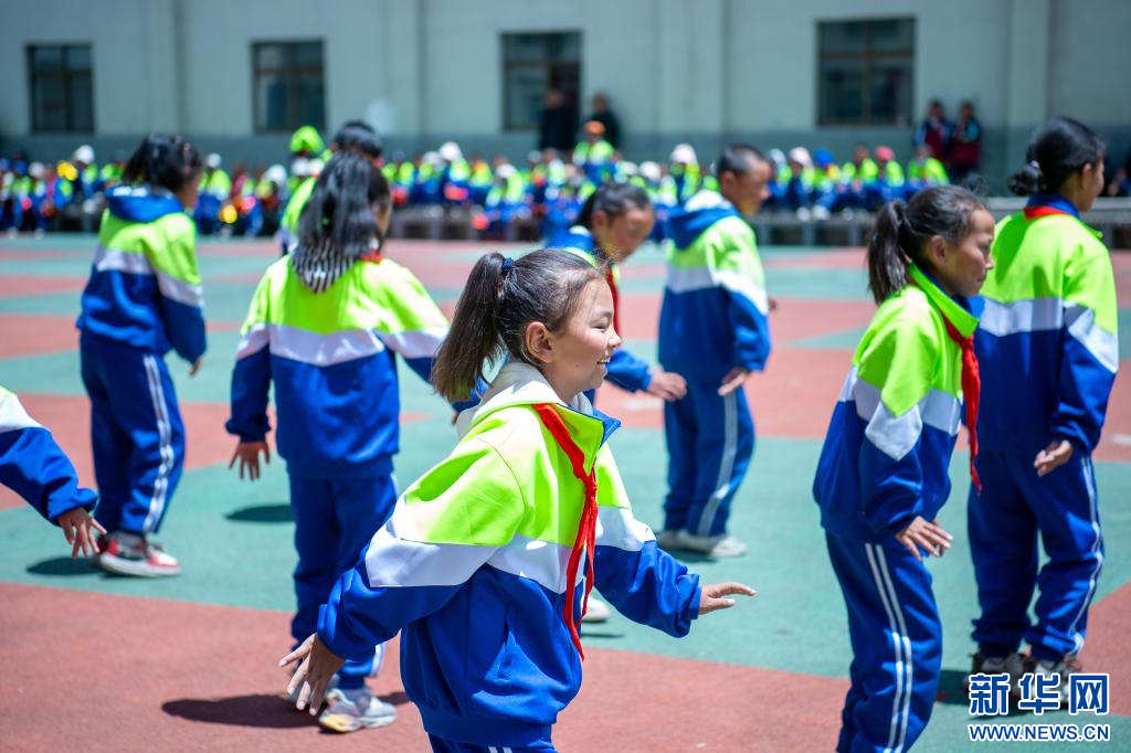6月21日,乃東區(qū)亞堆鄉(xiāng)小學的學生在表演節(jié)目。新華網(wǎng) 旦增努布 攝