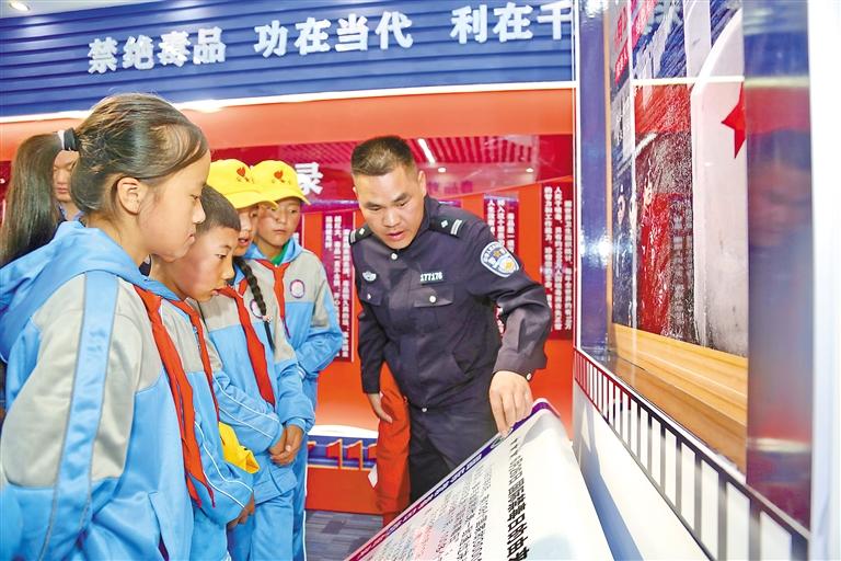 在禁毒基地的展覽廳內,學生們圍聚在公安民警身旁,認真聆聽每一句講解。民警結合展廳內的圖片、實物、案例,深入淺出地向學生們介紹了毒品的種類、危害以及防范禁毒的方法,用生動的語言為學生們上了禁毒教育的生動一課,讓學生們在輕松愉快的氛圍中掌握了更多防范毒品的方法和技巧,提高了廣大青少年對新型毒品的認識和了解,為構建平安校園、無毒校園奠定了堅實基礎。
