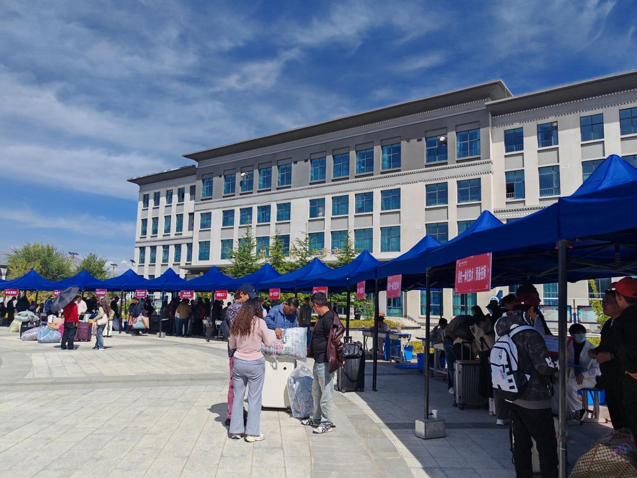 在西藏技師學院校園里,隨處可見“歡迎新同學”的標語和展板,校園內還設置了立體合影展臺供學生留影,營造出了濃濃的暖心氛圍。學生和家長們帶著大包小包的行李,秩序井然地進入校園,找到所錄取專業(yè)報到點前完成入學手續(xù),各班班主任都等候在報到點,耐心地回答學生們的疑問、專業(yè)學習情況、體檢和助學金的申請等問題。