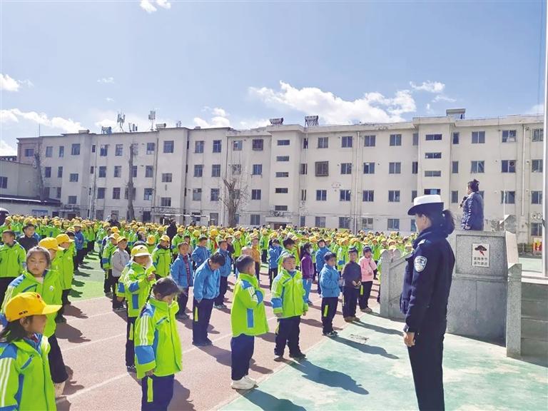 民警向?qū)W生講解交通安全知識。圖由拉薩交警提供