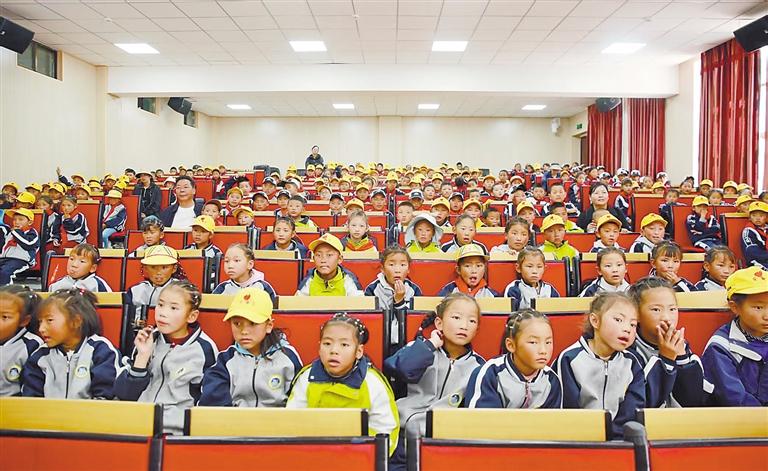為學(xué)生認(rèn)真聆聽報(bào)告。記者 格桑倫珠 攝。