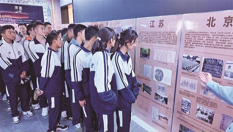 學(xué)生觀看禁毒先驅(qū)林則徐生平史績?nèi)珖?lián)展展板。文/圖 記者 張雪芳