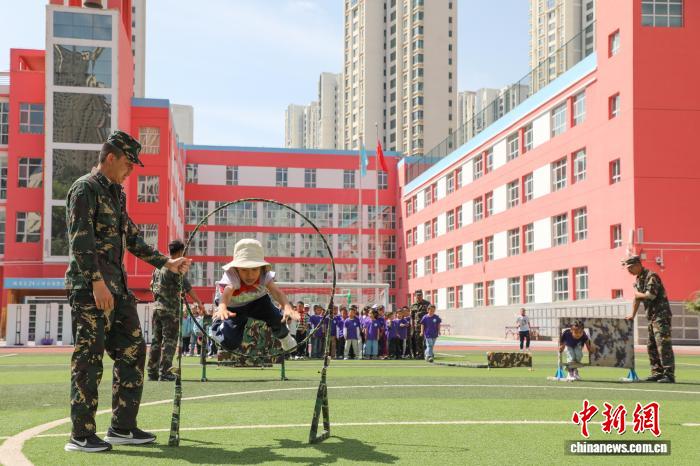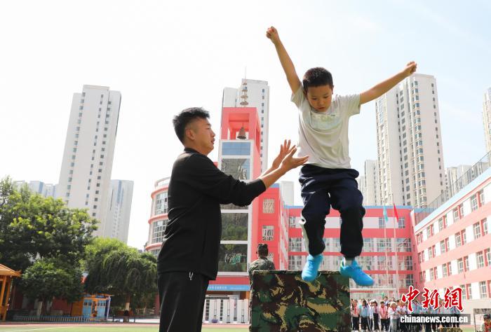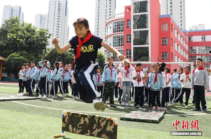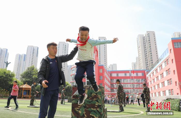 圖為學生體驗組合障礙訓練。中新社記者 馬銘言 攝