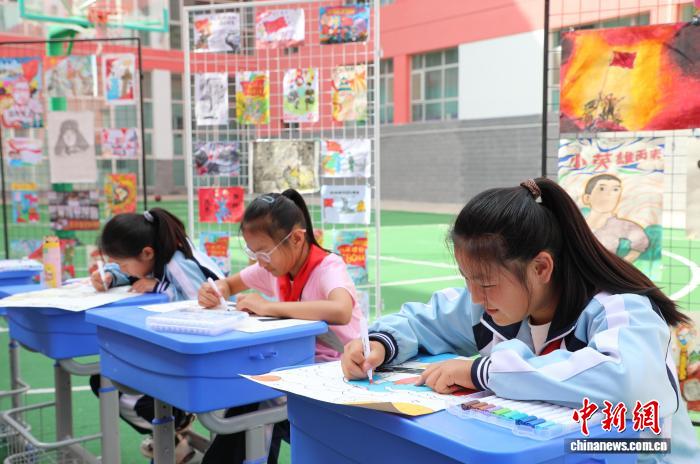 圖為學生繪畫作品。中新社記者 馬銘言 攝