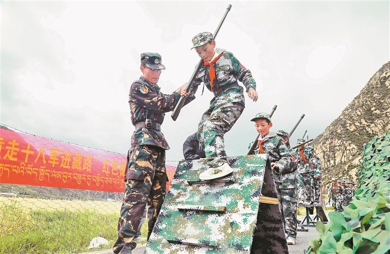 圖為學(xué)生在體驗跨障礙物訓(xùn)練。記者 格桑倫珠 攝