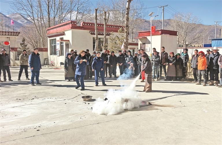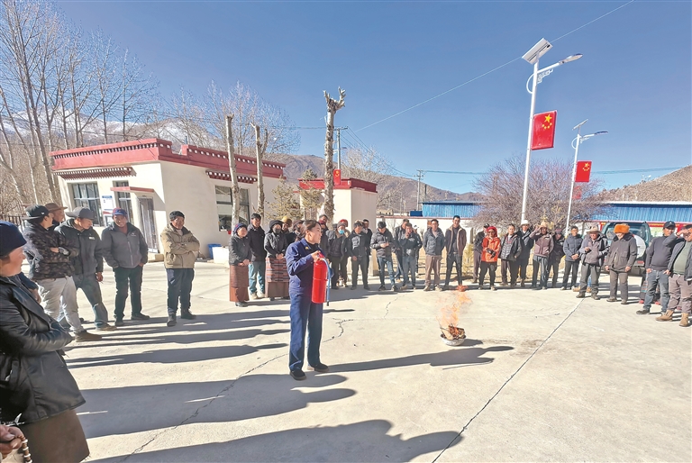 近日,墨竹工卡縣采用縣鄉(xiāng)村三級聯(lián)動模式,聯(lián)合消防部門在扎西崗鄉(xiāng)加爾多村開展消防安全宣傳培訓(xùn)、隱患排查及器材配發(fā)活動。工作人員用漢藏雙語普及消防知識、演示器材操作。