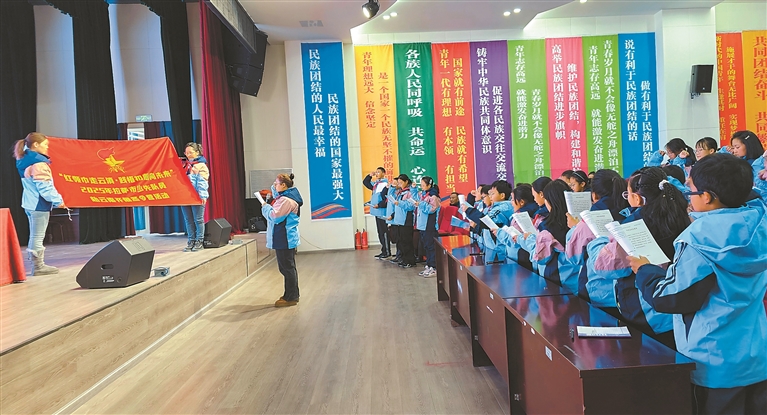1月4日,拉薩市少年兒童活動中心彩旗飄揚,歌聲嘹亮,“紅領巾走云滇·踐悟紅色新征程”紅色研學寒假冬令營開營儀式在此舉行。