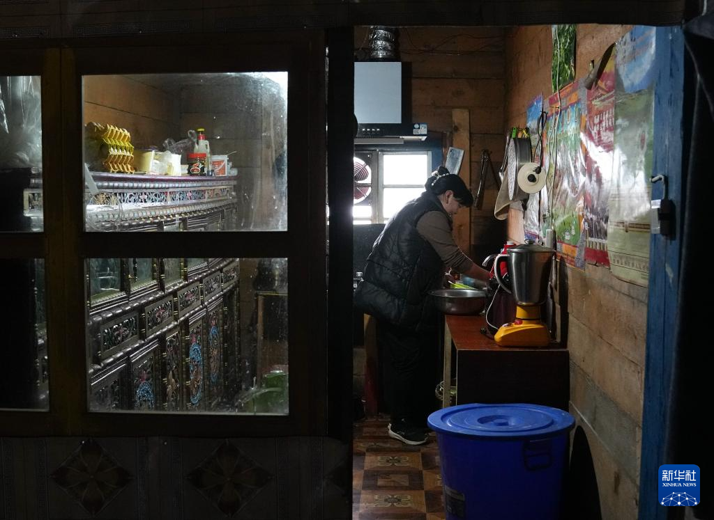 洛松頓珠的母親次吉在廚房內(nèi)為旅客準(zhǔn)備晚餐(4月2日攝)。新華社記者 丁汀 攝