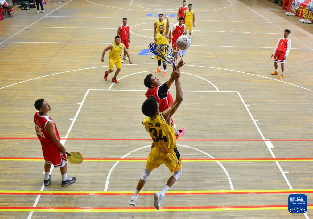 5月14日,那曲隊次仁多吉(左)在比賽中傳球。新華社記者 晉美多吉 攝