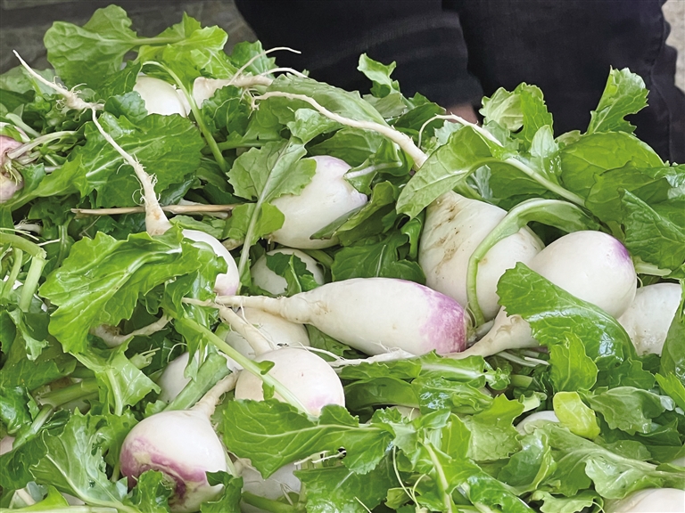 “這些‘妞瑪’都是昨天剛從地里挖的,20元一斤?!睌傊鞔稳噬2颊碇丝鹬械男迈r“妞瑪”,瞬間吸引了不少顧客。次仁桑布家住曲水縣其奴村,據(jù)他介紹,村里家家戶戶每年都會種植幾畝“妞瑪”,品相好的拿到拉薩銷售,其余部分則作為家畜的營養(yǎng)品。5月25日一大早,次仁桑布便帶著自家的“妞瑪”來拉薩銷售,“這些‘妞瑪’全是昨晚洗好、晾好的,一到市場上便成了‘香餑餑’,一上午就能賣掉四五十斤?!?/p>