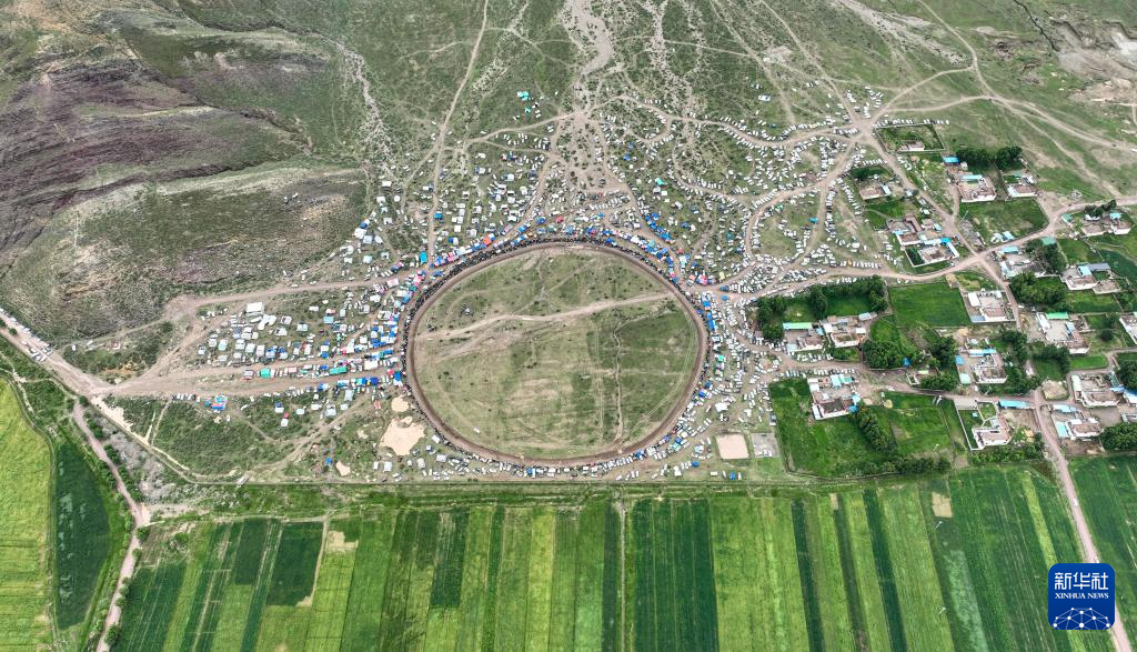 7月23日拍攝的拉薩甘丹曲果鎮(zhèn)賽馬場上的走馬比賽(無人機照片)。 新華社記者 晉美多吉 攝