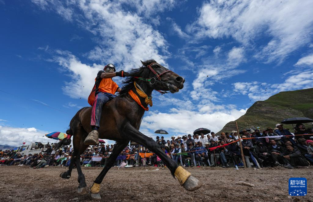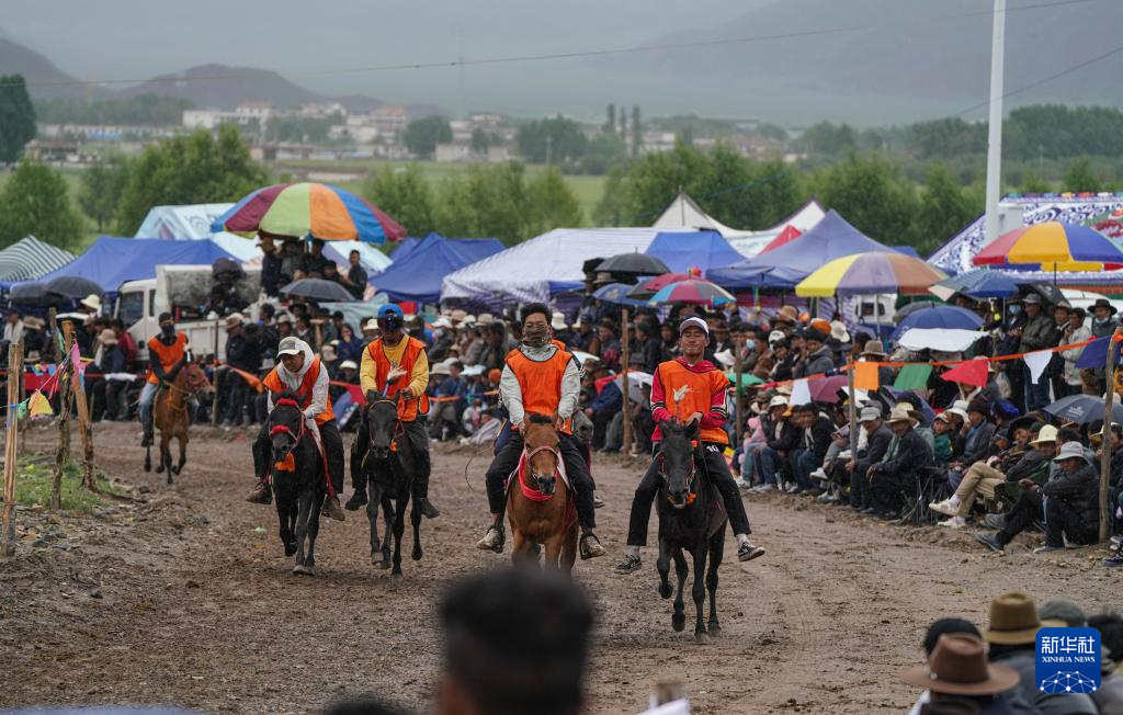7月23日在拉薩甘丹曲果鎮(zhèn)賽馬場拍攝的走馬比賽。新華社記者 晉美多吉 攝
