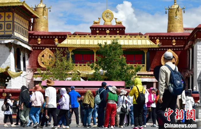 圖為9月7日游客在大昭寺廣場游覽。中新社記者 李林 攝 ?。ㄘ熅帲?李雨潼 )