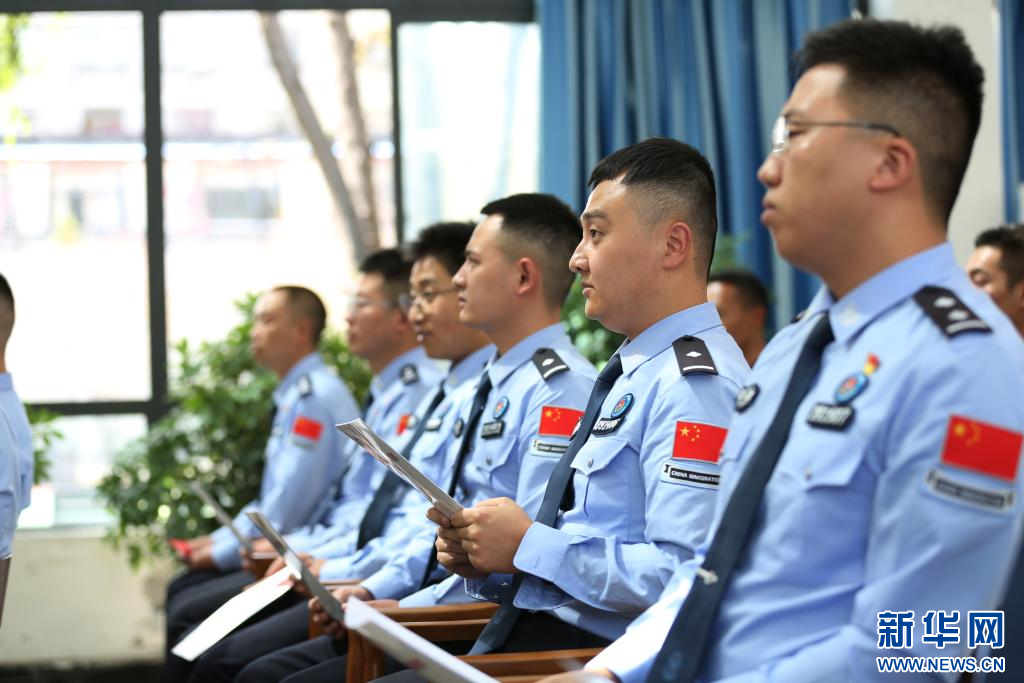 現(xiàn)場(chǎng)民警認(rèn)真聆聽(tīng)詩(shī)歌分享(9月11日攝)。新華社發(fā)(肖富貴 攝)