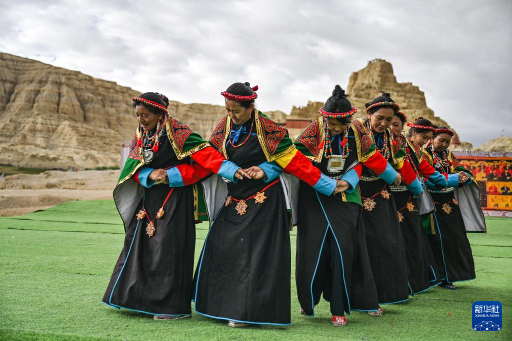 在西藏阿里地區(qū)札達(dá)縣古格王國(guó)遺址腳下,當(dāng)?shù)卮迕癖硌荨靶琛保?月11日攝)。新華社記者 孫瑞博 攝