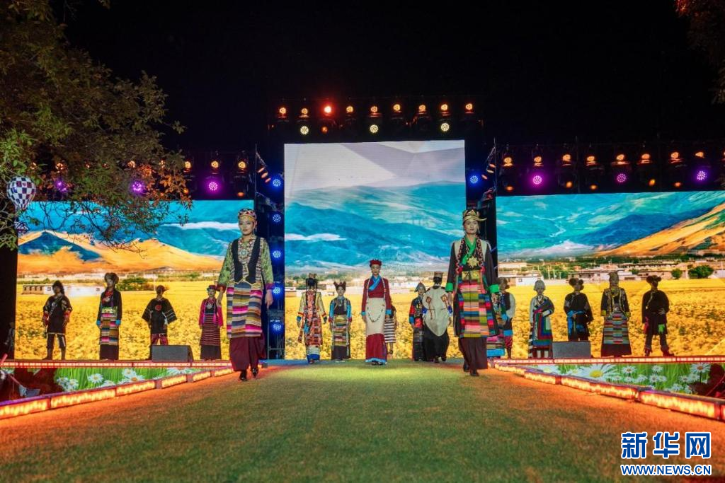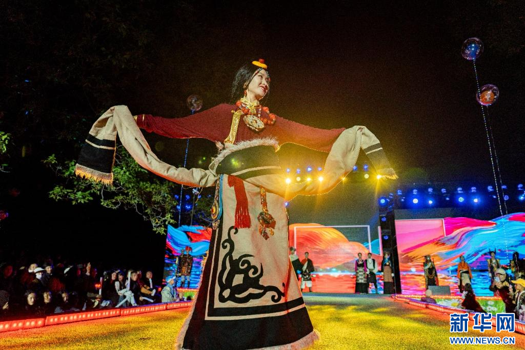 24日,西藏山南市加查縣舉辦“魅力達(dá)布·印象綻放”民族服飾秀活動(dòng)。色彩斑斕的民族服飾在現(xiàn)場(chǎng)雨珠與燈光的點(diǎn)綴下,更顯生動(dòng)與靚麗。